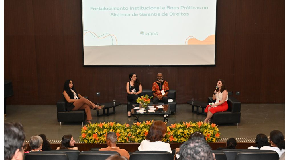 O Seminário foi encerrado com o Painel "Fortalecimento Institucional e Boas Práticas no Sistema de Garantia de Direitos", que promoveu um rico diálogo com a participação da plateia e convidados especiais: Dra. Juliana Diniz (Assessora Jurídica da Central de Conselhos de Curvelo), Adjanir Silva (Mundi Movimento Negro) e Ana Paula (Presidente do CMDCA de Pirapora), com mediação de Aline Seoane (Diretora executiva do CeMAIS).
